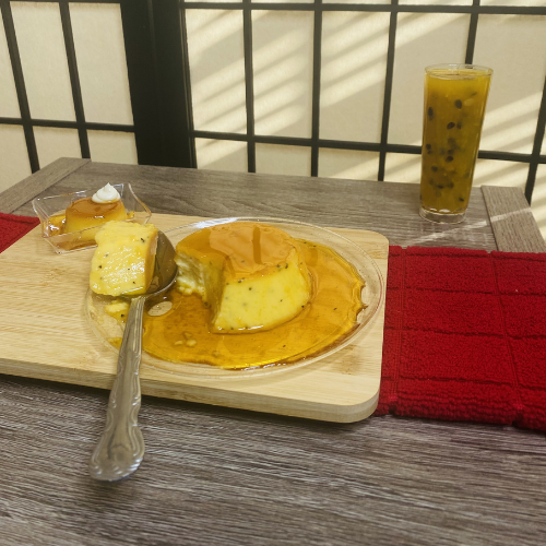 A smooth and creamy custard made from eggs, sweetened condensed milk, evaporated milk, and vanilla. Baked over a luscious caramel sauce, this flan offers a rich and silky texture with a perfect balance of sweetness and a rich vanilla flavor. Served chilled, it is a delightful treat that melts in your mouth, making it a favorite for any occasion.